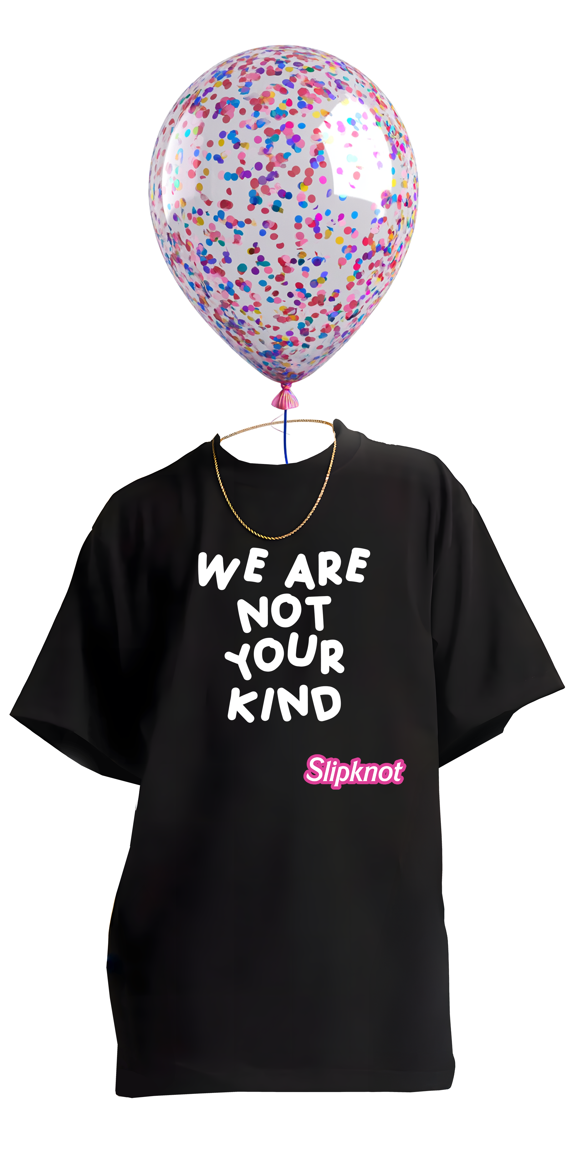 Bold front text + ironic Slipknot logo in Barbie pink (hell yes)